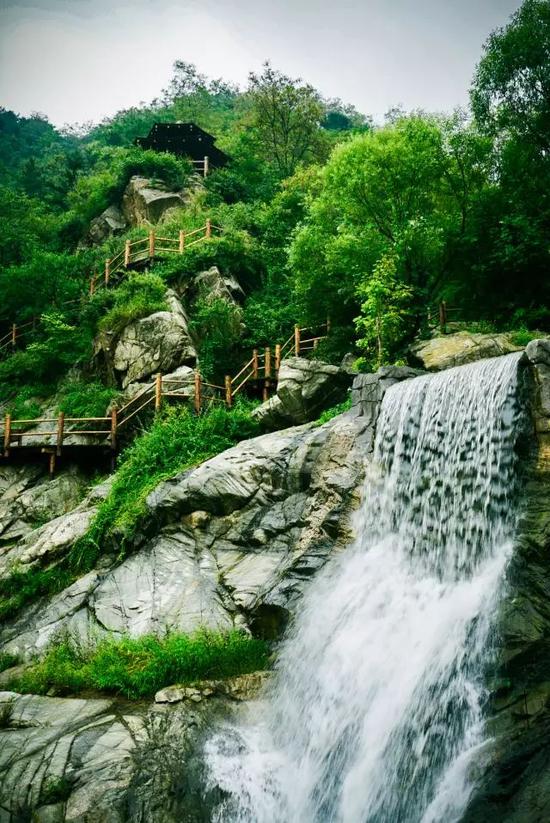 九如山瀑布群风景区是国家4A级景区,山泉遍布,瀑布成群,尤其是景观内长度堪称世界第一的实木栈道巧妙串联其中。