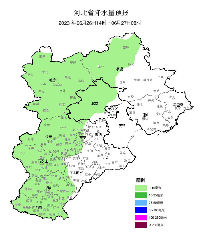 河北省气象台2023年06月26日11时发布天气预报: