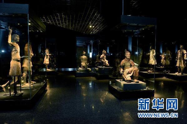 西安秦始皇帝陵博物院举办的“真彩秦俑”展览现场(2014年11月21日摄)。新华社发(张天柱 摄)