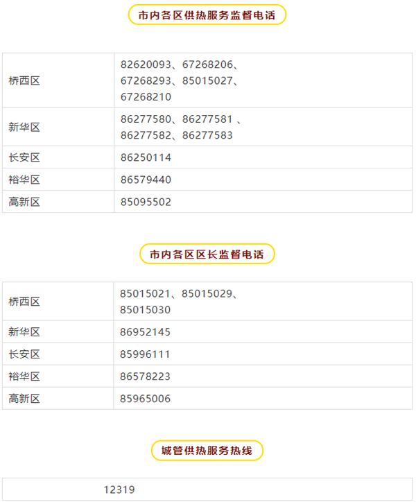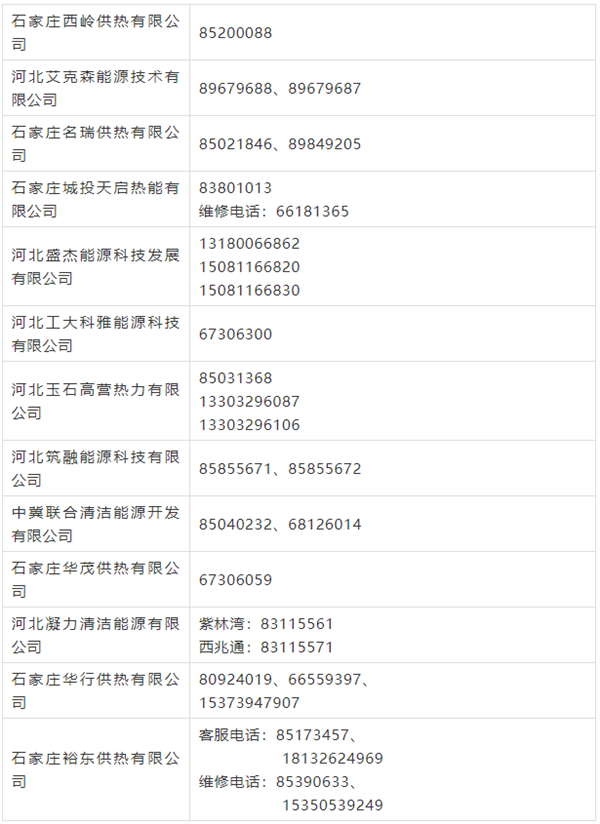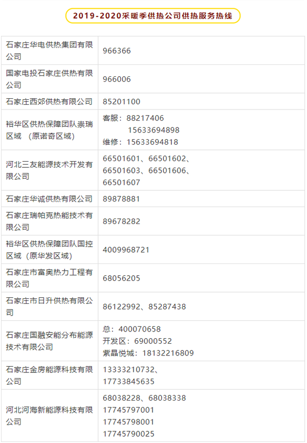 石家庄:2019年最新供暖服务热线电话自11月1日起全部开通