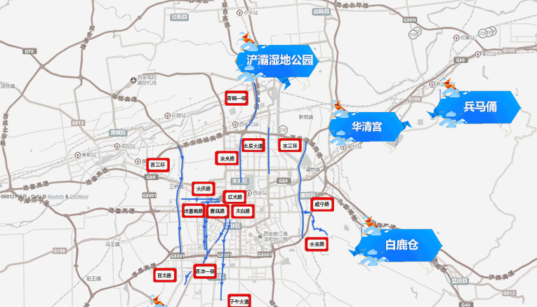 (二)商圈、景点、公园周边道路将保持高位运行,传统景点兵马俑、回坊、永兴坊、陕西历博、曲江、白鹿仓等周边、城北的渭河城市运动公园,城东的湿地公园、世园会、白鹿原,城南的樊川公园均为出行热点,同时,踏青赏花、乡村游和“农家乐旅游”将大幅增加,环山旅游带沿线、太平祥峪森林公园、周至水街及各峪口出行将明显增加,每日10-18时为出行高峰。