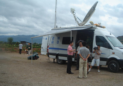 贵州省气象应急指挥车在黄平县工作。