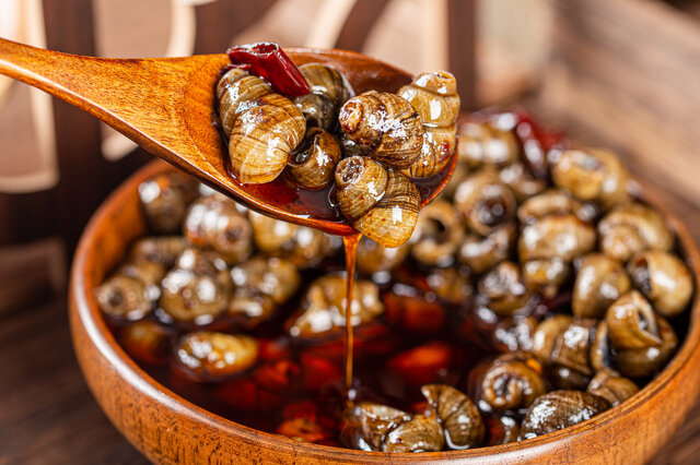 永州喝螺是湖南永州一带的小吃,属于湘菜系,顾名思义是喝着吃的田螺。选用当地所产铁螺加工烹调而成,具有清香脆嫩、汤鲜味美等特点,带有浓厚的地方风味。据鉴定,喝螺营养价值极高,能清火开胃,益元气,和五脏。永州喝螺的味美,主要是由于它的制作讲究,大体可分为选、生、剁、炒、煮五道手序。其味道又辣又鲜,特别开胃。永州喝螺入选由中国烹饪协会主办“中国地域十大名小吃”湖南榜名单。 【 详细>>】