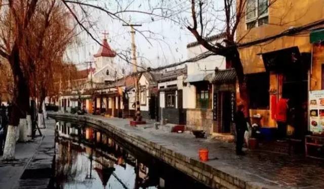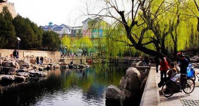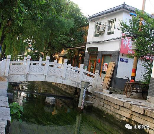 街道纵横交叉,幽深曲折,街上只有几十户人家,多为青砖瓦房、小户门楼,漫步在这条道路上,泉池清澈见底,岸边垂柳依依,颇有江南水乡风韵,淡雅、洗练、温馨、和谐,令人流连忘返。