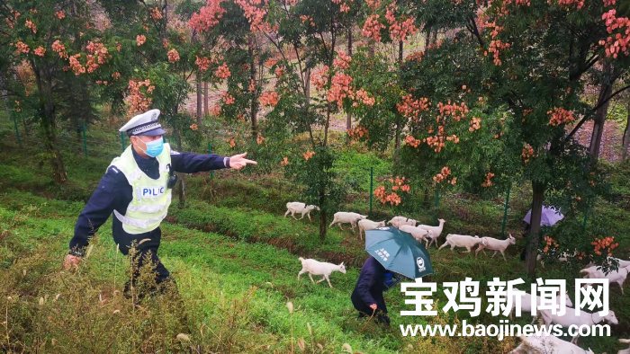 宝鸡新闻网讯(记者 张超)雨中20只羊在银昆高速宝鸡段护坡上蹿来蹿去,被巡逻至此的宝鸡市公安局交警支队高交大队宝平中队民警发现。10月15日上午,民警及时劝离放羊人与羊群,消除了安全隐患。