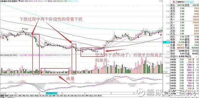 股价一直在持续下跌,但是没有出现过放量下跌的情况,那么就算出现了地量地价,也不能说明出现了底部。市场需要跌倒多头彻底丧失信心,跌势才可能会停止。例如中联重科在下跌过程当中有两个阶段性的带量下跌。之后出现了地量以及地价的现象。地量出现后,可能出马上出现地价,也有可能在后续的时候再出现地价。空头的下跌能量释放出来,市场止跌上扬的可能性比较大。