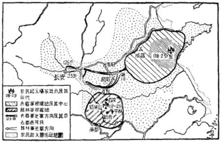 赤眉绿林起义形势。来源/《中国简史》 天津师范学院历史系《中国简史》编写组编出版发行 ,人民教育出版社 ,1979年