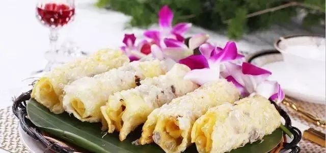 夹沙乳扇是大理的一大特色小吃,将乳扇放入油锅煎炸成筒形,表皮呈金黄色,里面夹着核桃、玫瑰酱、豆沙,吃起来酥脆香甜,奶香异常,营养丰富。