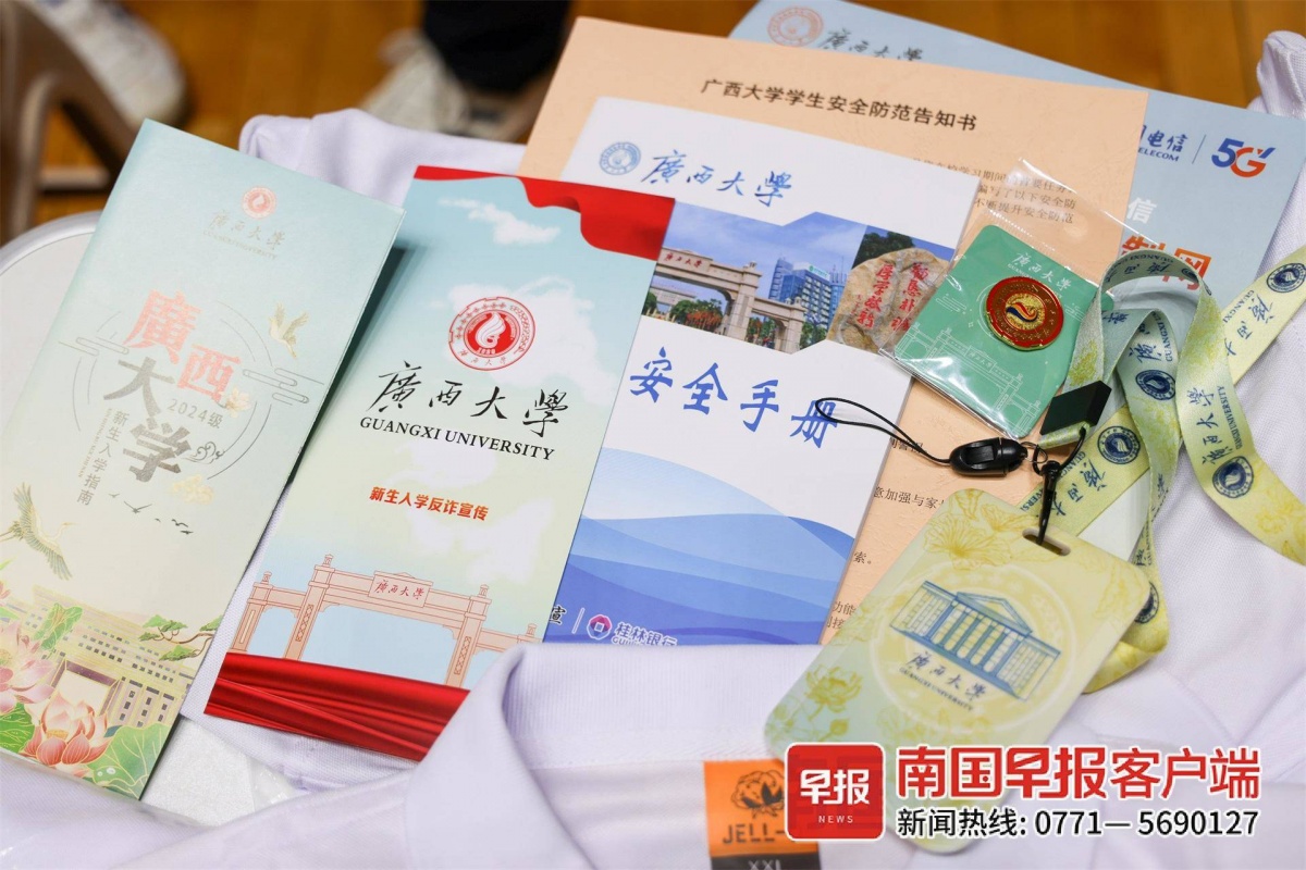 ▲广西大学新生礼包里的物品。记者 邹财麟 摄