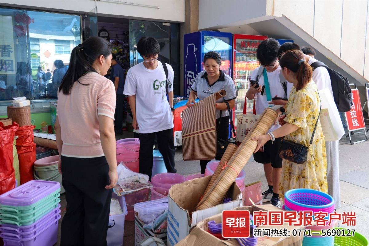 ▲学生与家长在购买宿舍用品。记者 邹财麟 摄
