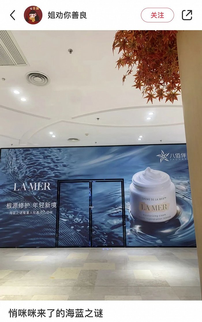 品牌门店方面,根据海蓝之谜公众号,海蓝之谜在昆明、石家庄、长春、徐州、银川、温州、南通、义乌、金华、盐城、丽江、香格里拉等二三线城市都有入驻。引进了大量以往一线城市才有的“大牌”,已成为一些低线城市商场的开业宣传内容。2022年12月31日开业的邯郸新世纪中心,拥有迪奥、香奈儿、赫莲娜、CPB、雅诗兰黛、海蓝之谜、莱珀妮等国际大牌打造的“VIP美容房”,而兰蔻、YSL、POLA、毛戈平等化妆品品牌的专柜或门店更是“稀松平常”。