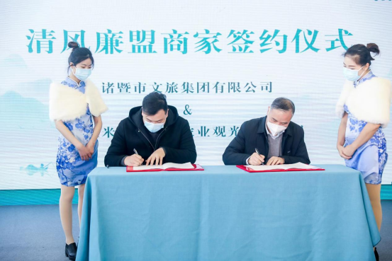 据介绍,平台归集市域内餐饮、民宿、农产品等百余家“清风联盟”商家,参观者可线上参与学习互动,以此获取相应积分,并兑换为消费优惠券,用于在“好美诸暨”商城定点消费。活动当天,诸暨市文旅集团与清风廉盟商家代表签约,推动廉洁文化产品成为助推共同富裕、乡村振兴的“真金白银”。