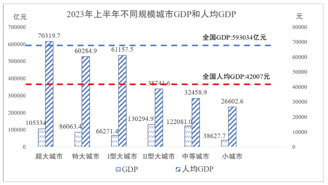 1.从GDP增速看,2023年上半年超大城市GDP平均增速为7.2%,特大城市平均增速为5.6%,其他类型城市增速均低于全国水平。
