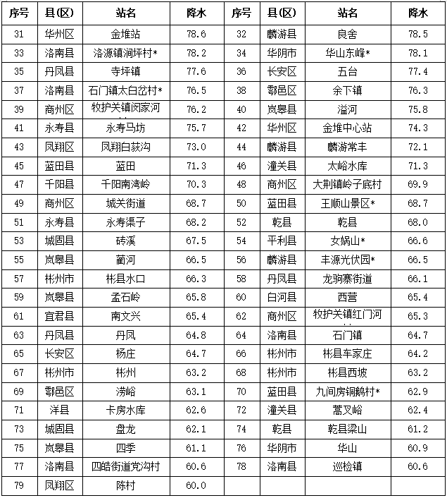 其中9站大暴雨 最大鄠邑草堂镇151.4毫米