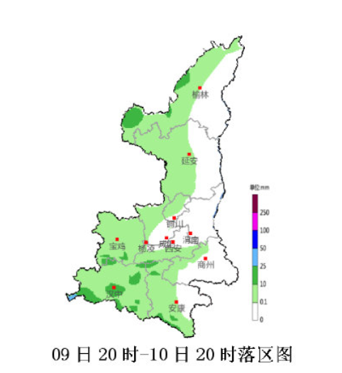 9日: 全省阴天,大部有分散性阵雨,其中陕北南部部分地方有小到中雨,局地大雨。