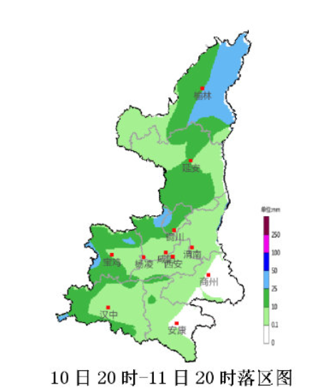 10日 :全省阴天,大部有分散性阵雨 ,其中关中部分地方、陕南西部部分,秦巴山区部分地方有小到中雨,局地大雨。