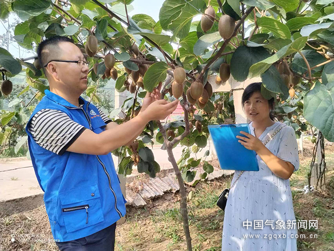 在金渠镇田家寨村“80后”创业青年孙国庆的猕猴桃示范园里,气象监测仪、虫情监测预警系统等设施颇为惹眼。孙国庆说:“有了气象科技助力,今年猕猴桃收成不错。”