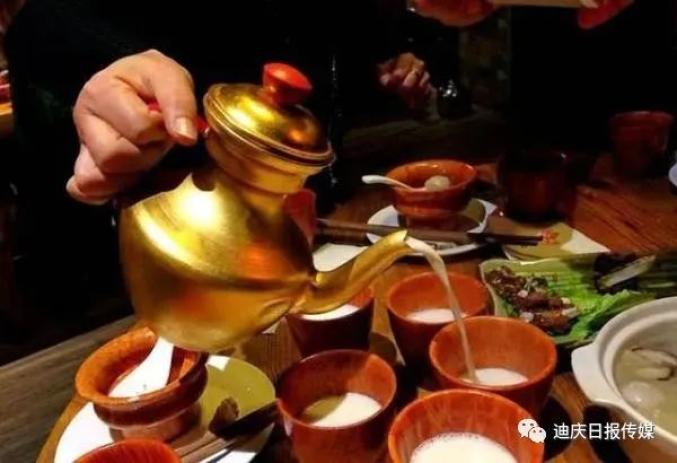 酥油茶多作为主食,与糌粑一起食用。将土茶倒入茶筒,加以酥油、食盐和精制的香料,搅拌成油茶交融并加热,即可饮用。