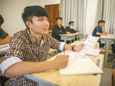 7月15日,在老挝首都万象的老挝国立大学孔子学院,中老铁路老挝籍学员参加专业培训。