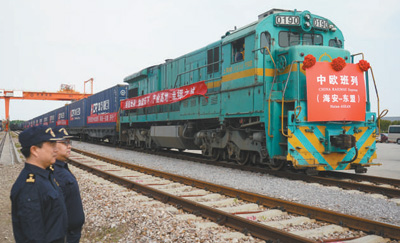 5月26日,一列满载工业机械零配件、纺织品、光伏产品等货物的中欧班列(海安—东盟)从中国江苏海安出发,开往越南河内。