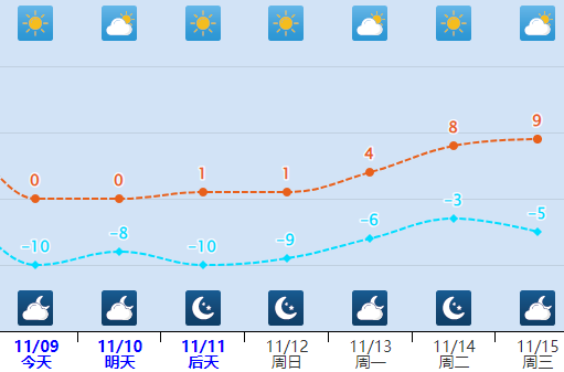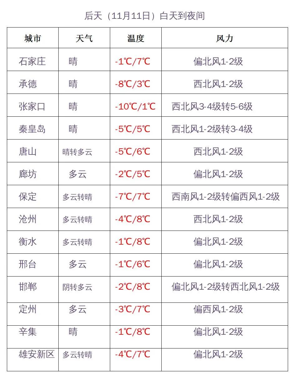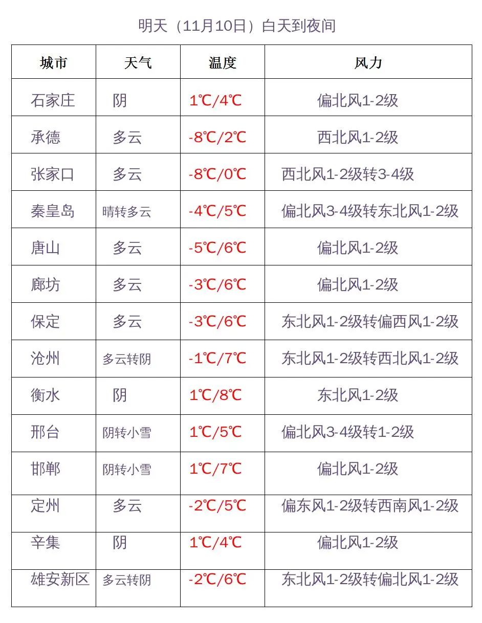 明天早晨,各地最低气温大都能触及冰点,张家口、承德地区更是能到零下10℃左右。