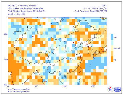 201701 - 201703 - 中国 - 降水概率 - 7个月(动力模式预报的降水概率)