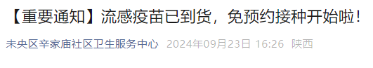 日前,西安多区发布相关通知,提醒大家接种流感疫苗。
