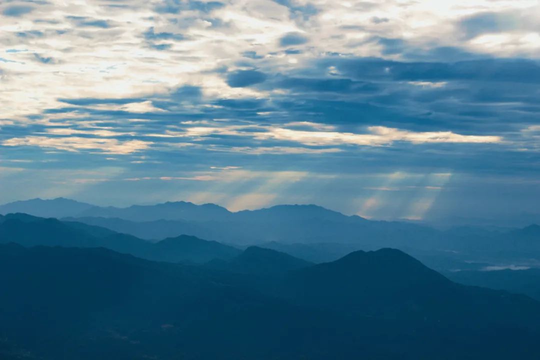 这也成了武功山最好的广告词。从“日景”“彩云”我们大致可以推测出徐霞客当时看到的是日出和云海,在山顶推门而出,似脚踏彩云,一轮红日喷薄而出,如金在冶。