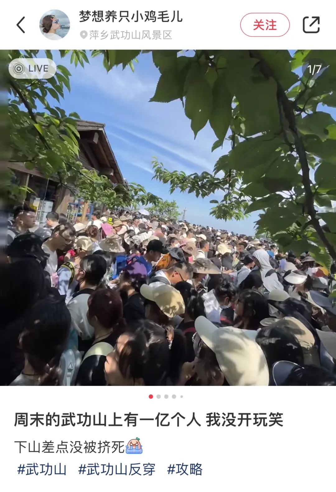 据小红书网友前线播报,周末的武功山上,大概能堵个1亿人。