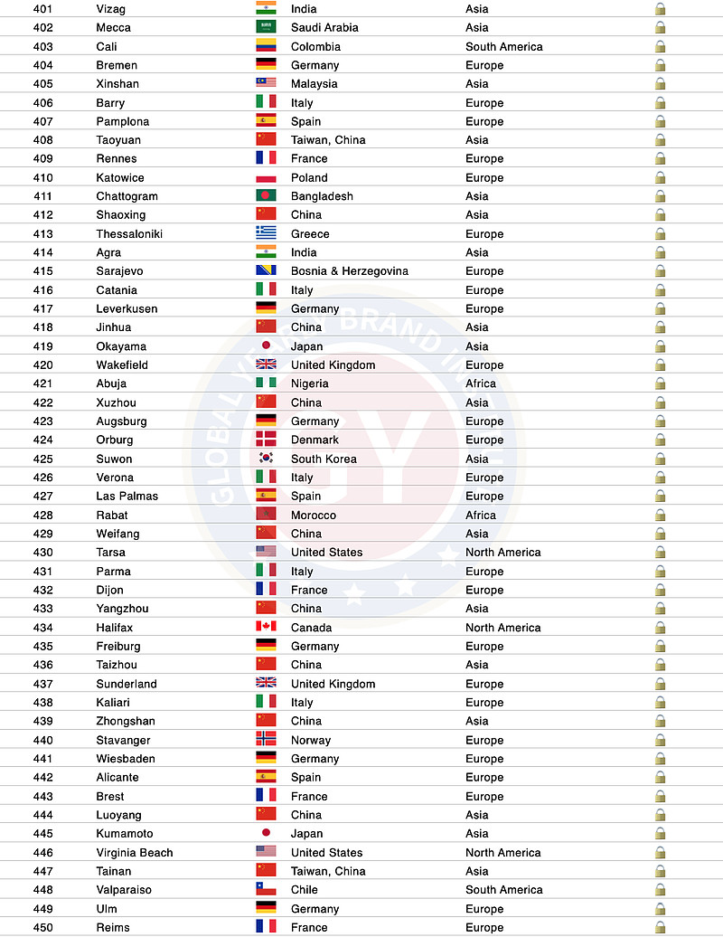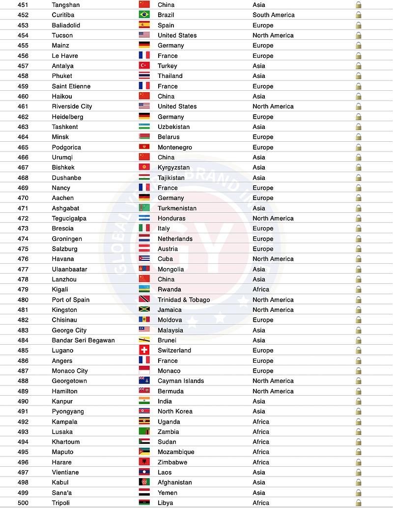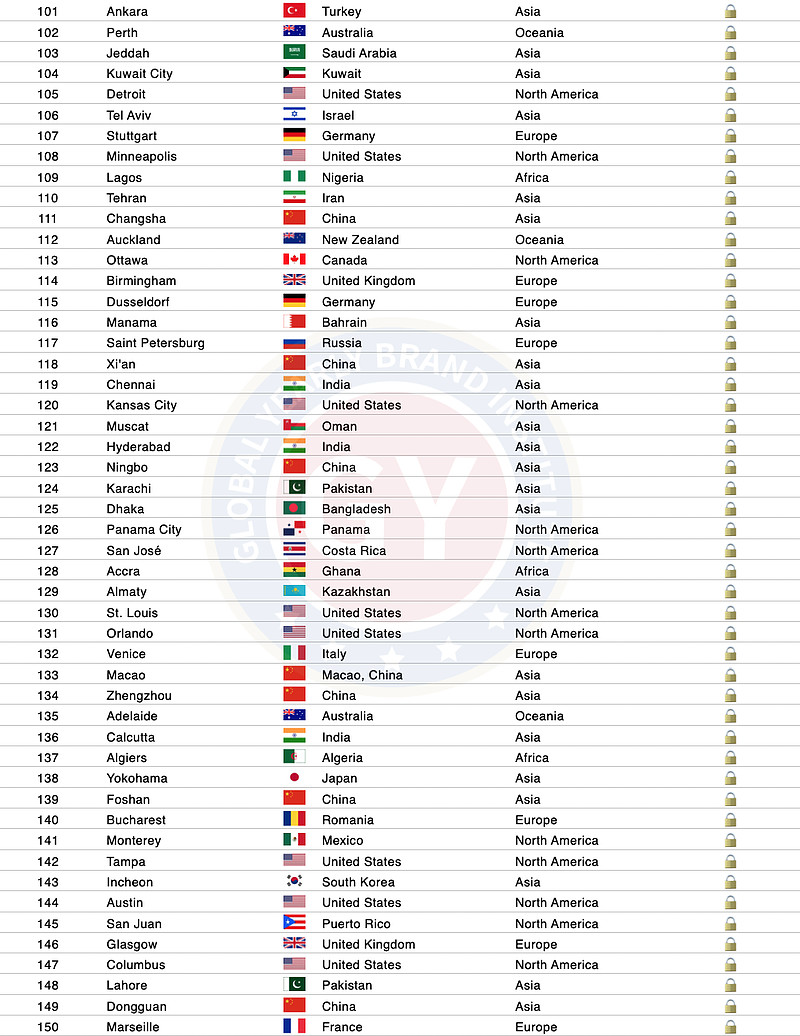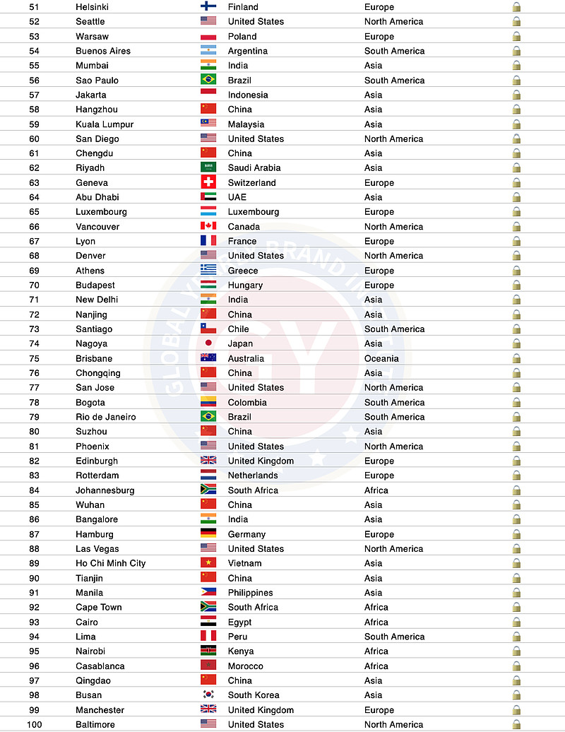 GYBrand今年将陆续发布《世界城市500强》、《中国百强城市》、《亚洲城市100强》、《国际金融中心城市100强》、《中国金融中心城市20强》等一系列城市榜单,敬请关注。