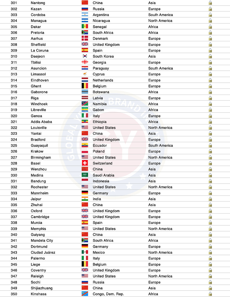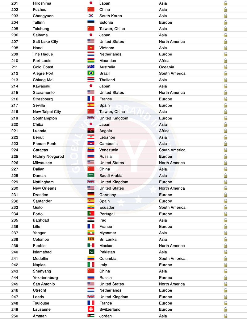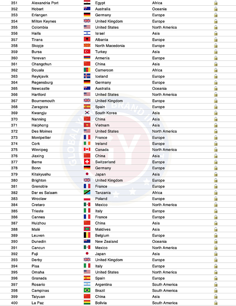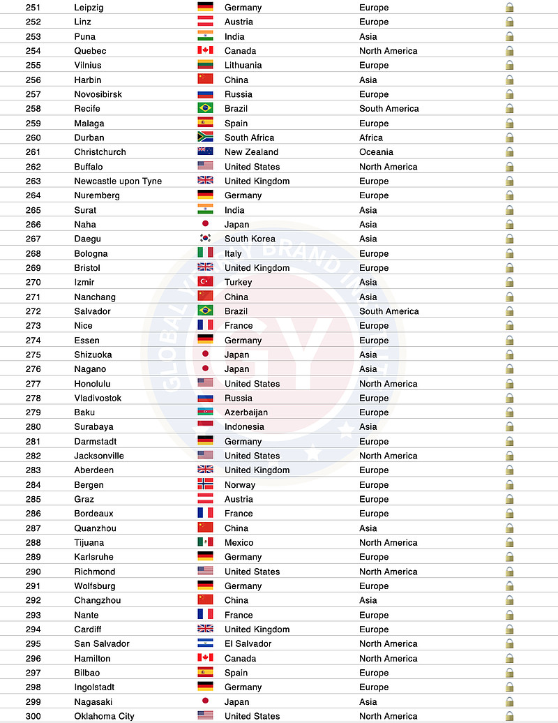 GYBrand今年将陆续发布《世界城市500强》、《中国百强城市》、《亚洲城市100强》、《国际金融中心城市100强》、《中国金融中心城市20强》等一系列城市榜单,敬请关注。