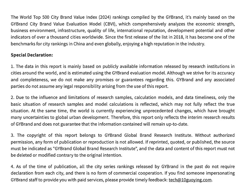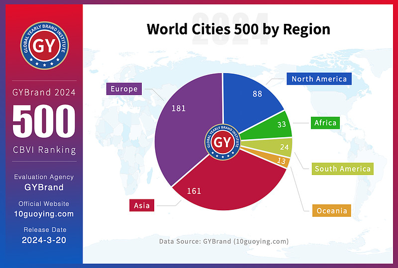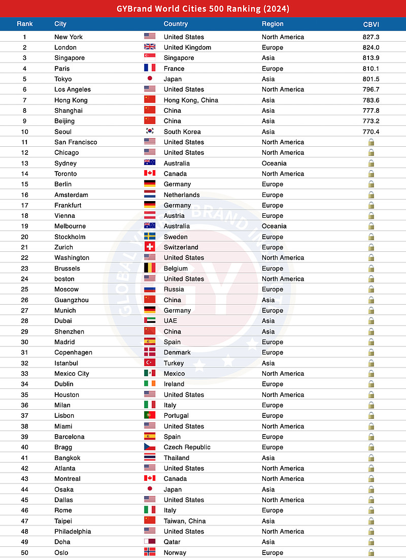 在复杂多变的国际形势下,3月20日,城市排名研究机构GYBrand正式发布2024年度《世界城市500强》排行榜。这是一份全面展示全球500强城市品牌价值的榜单,并不是简单按照城市的GDP或者人口规模排序,而是从经济实力、商业环境、基础设施、生活质量、国际声誉、发展潜力等指标进行综合分析,最终发布2024世界城市排名500强完整名单。