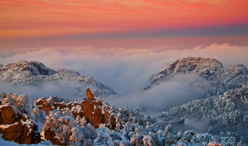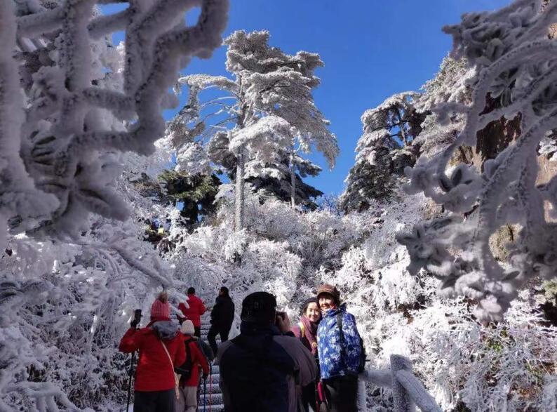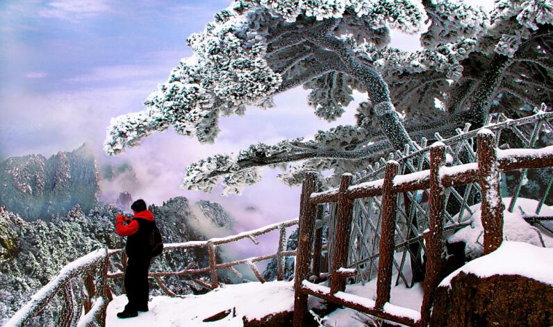 气势磅礴的山峰,晶莹剔透的雾凇,瞬息万变的流云,恢宏壮观的日落,雾气蒸腾的温泉......勾勒出黄山独有的冬季胜景。只等一场落雪,黄山的冰肌玉骨、如梦似幻与你不期而遇。(黄紫燕)