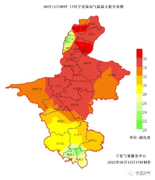 宁夏气候中心首席预报员王素艳分析,截至6月16日16时,石炭井(35.3℃)、石嘴山(38.4℃)、惠农(36.7℃)、贺兰(38.4℃)、平罗(36.4℃)5个国家站创本站有记录以来气温最高值,其中石嘴山、贺兰2个国家站为宁夏历史上6月份第二高值。
