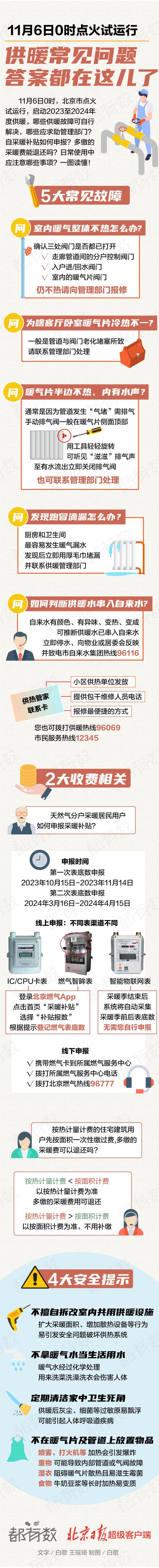 11月5日,一场以小雨过后,寒潮天气如约而至。今天,北京最高气温仅有10℃,最低气温已在0℃左右,山区个别地方甚至飘起了雪花。根据气象会商结果,近日北方将连续降温,为确保市民温暖过冬,北京市昨晚宣布,11月6日0时点火试运行,启动供暖。部分市民早上醒来,屋子里已经有了丝丝暖意。
