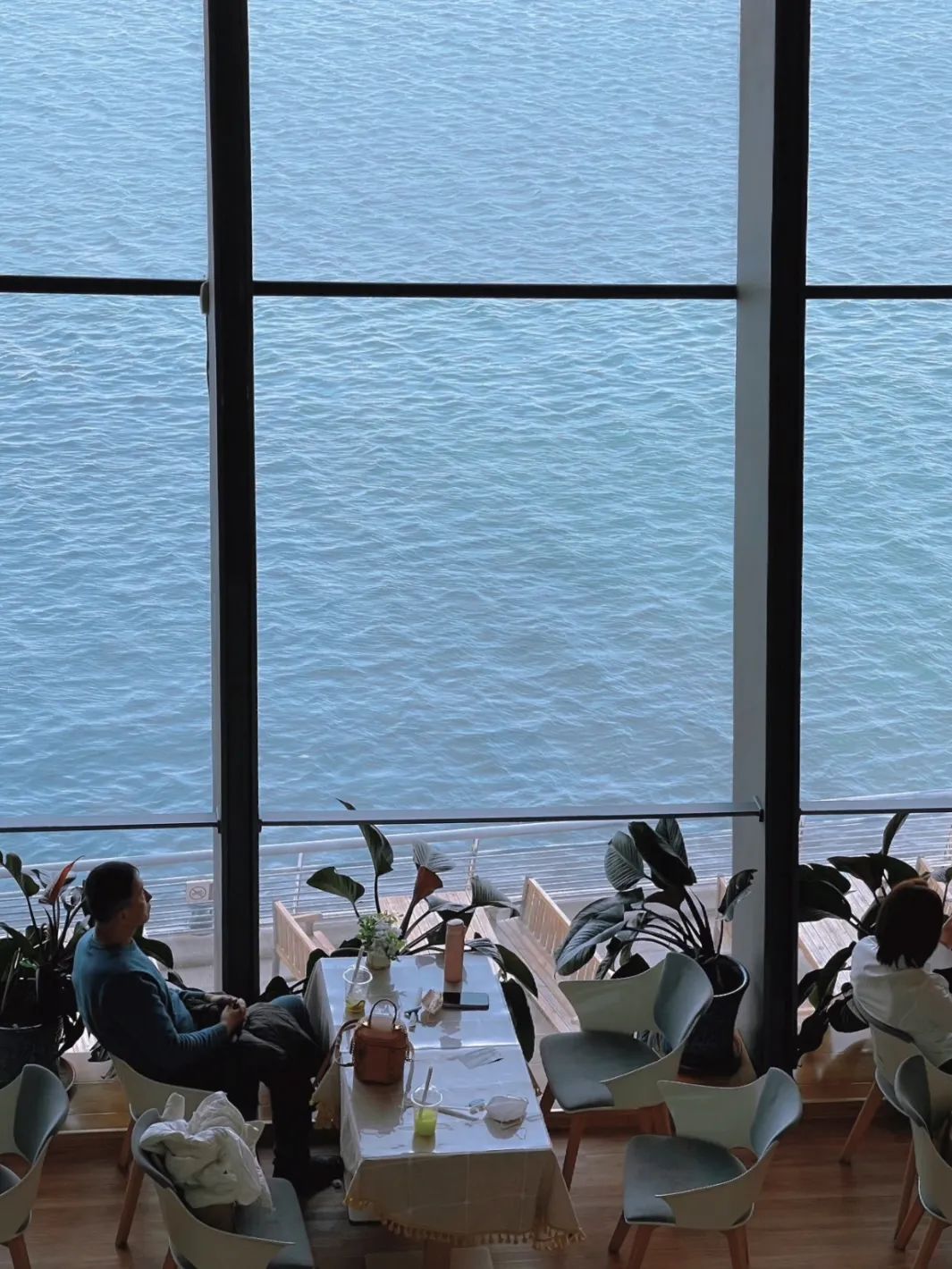 博物馆一楼的“网红”海景咖啡书吧,偏安一隅。高大透明的落地窗,泛着书香的休息区,逛累了,在此小憩片刻,或是看着窗外的海景发发呆,周身的疲惫都消散了。