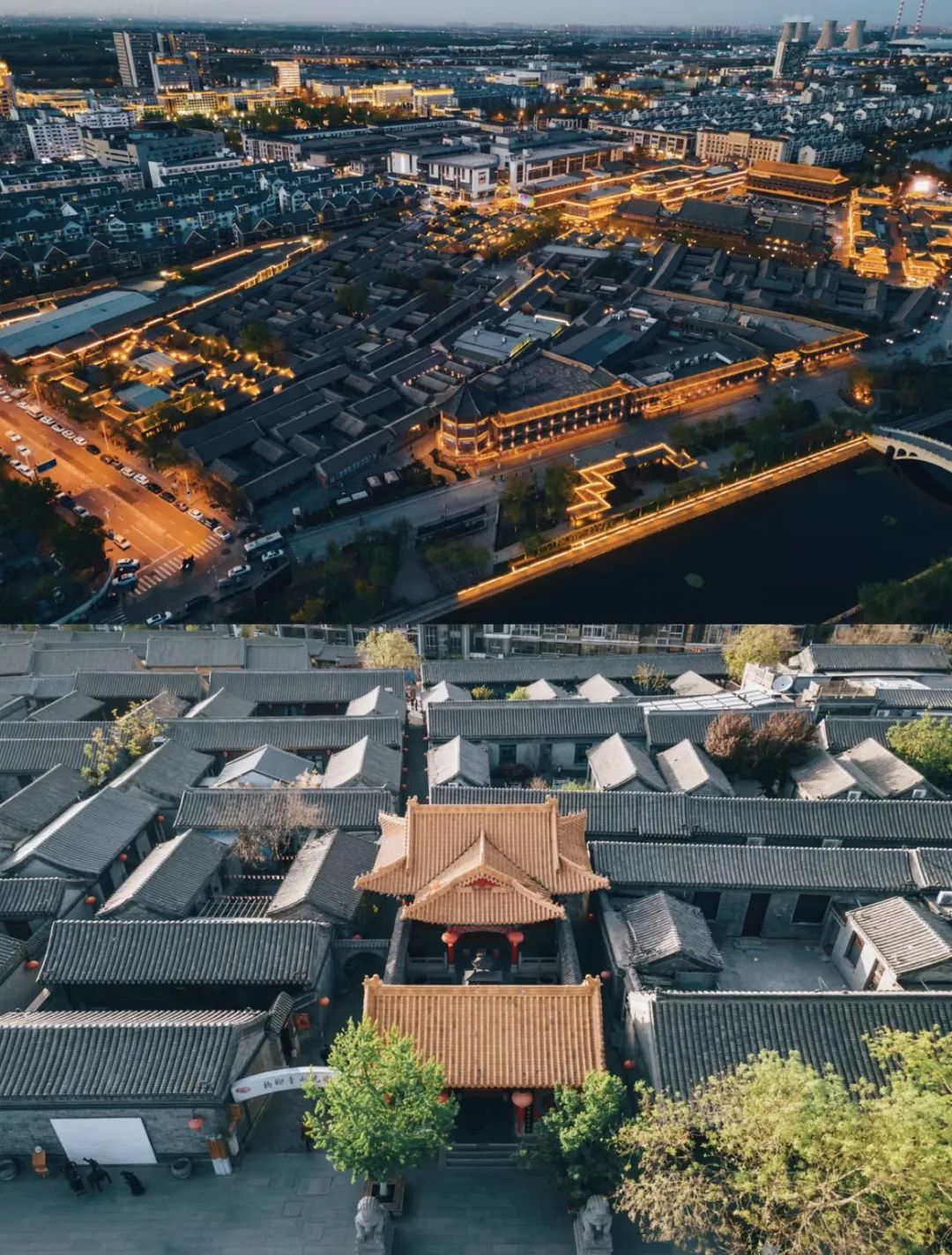 “千年杨柳青,百年天津卫”。杨柳青古镇位于天津西青区,大运河畔,明清时期因运河漕运而兴,是一组青砖灰瓦,磨砖对缝的仿清代商贸建筑群。