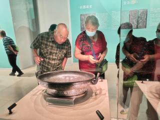 青铜器铭文是研究历史文化最直接、最真实的文字资料。它是补苴罅漏古籍文献的重要实证,又以直观的方式带领游客穿越回那段尘封的历史。来自云南的纳西族游客木劲松边欣赏边赞叹:“太惊艳了!”他说,青铜铭文大多记叙的是有关国与家的内容,而在世界的各民族中,只有中华民族是家国一体,家是小国,国是大家,家国一体,就是天下。正是有了这个概念,我们的民族才更加团结奋进。除此之外,木劲松还认为,圆形的青铜盘还有团圆、圆满的意义包含其中,这也是国人的情结和执念。这趟宝鸡之旅,木劲松和他的同伴们欣赏到了如此多的青铜器,大家纷纷感叹不虚此行。