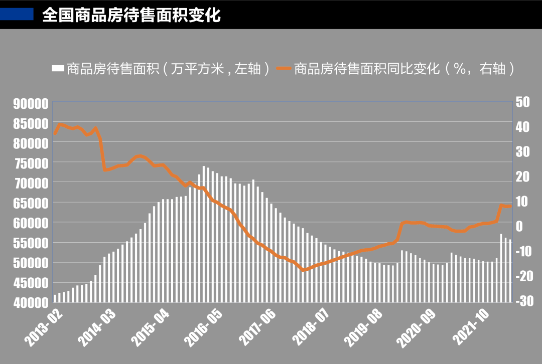 同样是国家统计局的数据显示,截至今年4月末,全国商品房待售面积5.57亿平方米,同比增长8.4%。