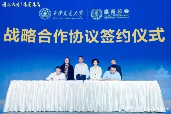 大会现场,秦商总会与西安交通大学进行了战略合作签约仪式。