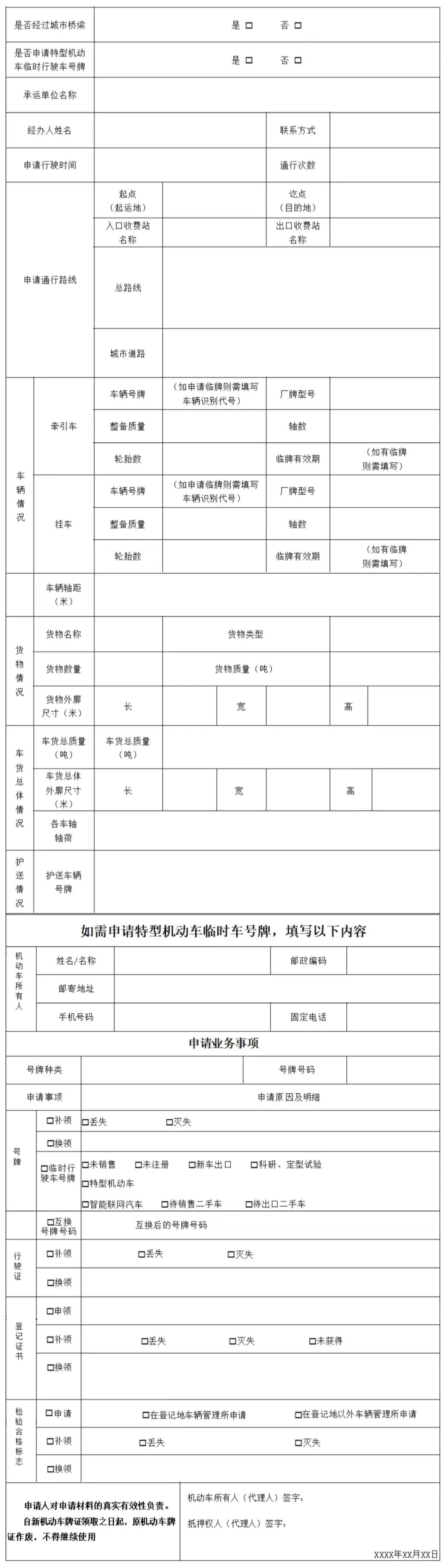 (一)大件运输按照通行路线,分为跨省、跨市、跨县、县内四类: