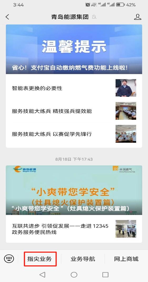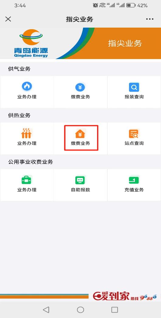 微信公众号:关注“青岛能源集团”微信公众号,依次点击“指尖业务”——“缴费业务”——选定“供热单位”(青岛能源热电集团有限公司)——输入“缴费户号”,按操作流程完成缴费。