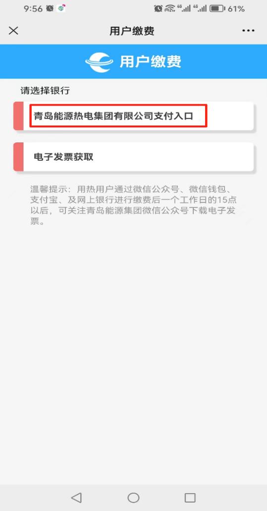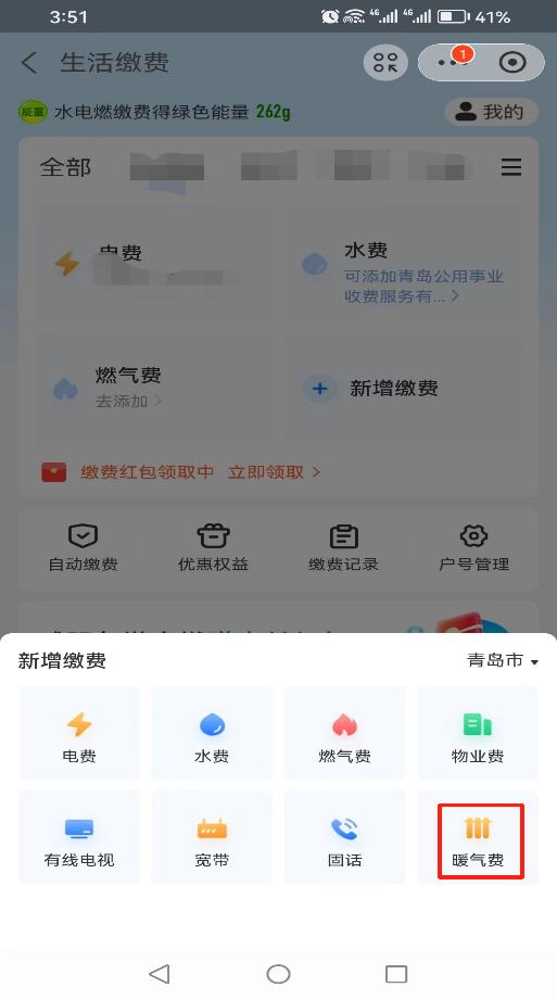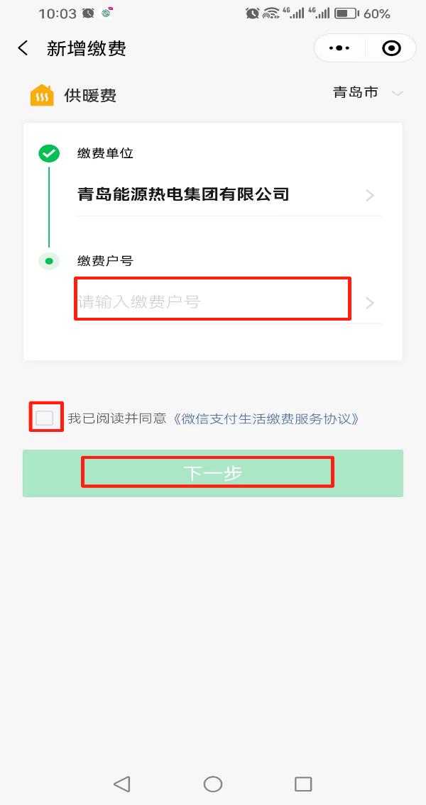 微信:依次点击“我”——“服务”——“生活缴费”——“供暖费”——选定“供热单位”(青岛能源热电集团有限公司)——输入“缴费户号”,按操作流程完成缴费。
