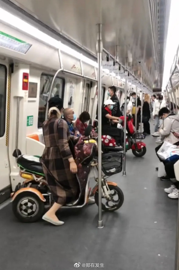 郑州地铁进电动车引争议 官方:系残疾人助力车