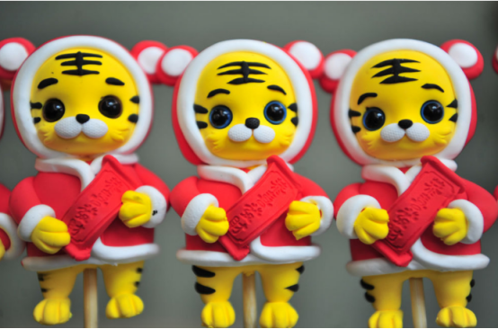 湖北省宜昌市夷陵区民间艺人精心制作一套由百余只“萌虎”组成的面塑作品,喜迎新春。