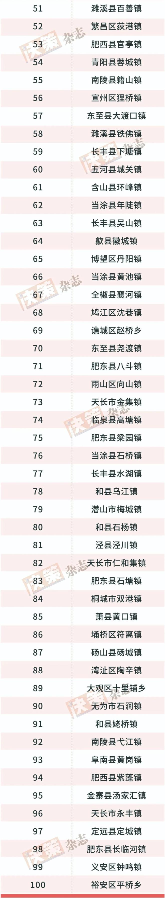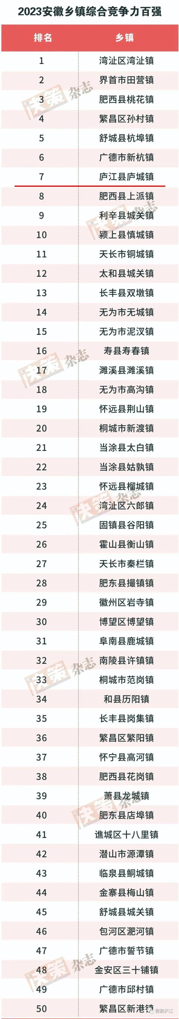 其中,庐江县庐城镇上榜,全省排名第7位。