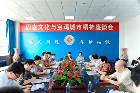 7月7日下午,宝鸡市委政策研究室与宝鸡文理学院在该院新校区图书馆第一会议室召开周秦文化与宝鸡城市精神座谈会。宝鸡市委常委、市委政策研究室主任党双忍,市委政策研究室副主任吕守奎,市社科联《宝鸡社会科学》编辑部主任王宏波,市文化旅游开发管委会副主任陈小平,该院党委书记、院长王志刚,副院长赵荣侠等出席座谈会。赵荣侠主持座谈会。