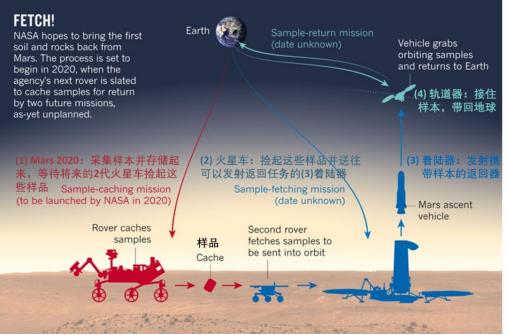 除了小行星采样,火星采样返回也在我国的深空探测规划之中。另一边,即将抵达火星的NASA的毅力号火星车,将在接下来的几年里开始火星采样和封装工作。只不过,这些样品在短期内还无法回到地球——要等到将来的火星返回任务来回收和带回。
