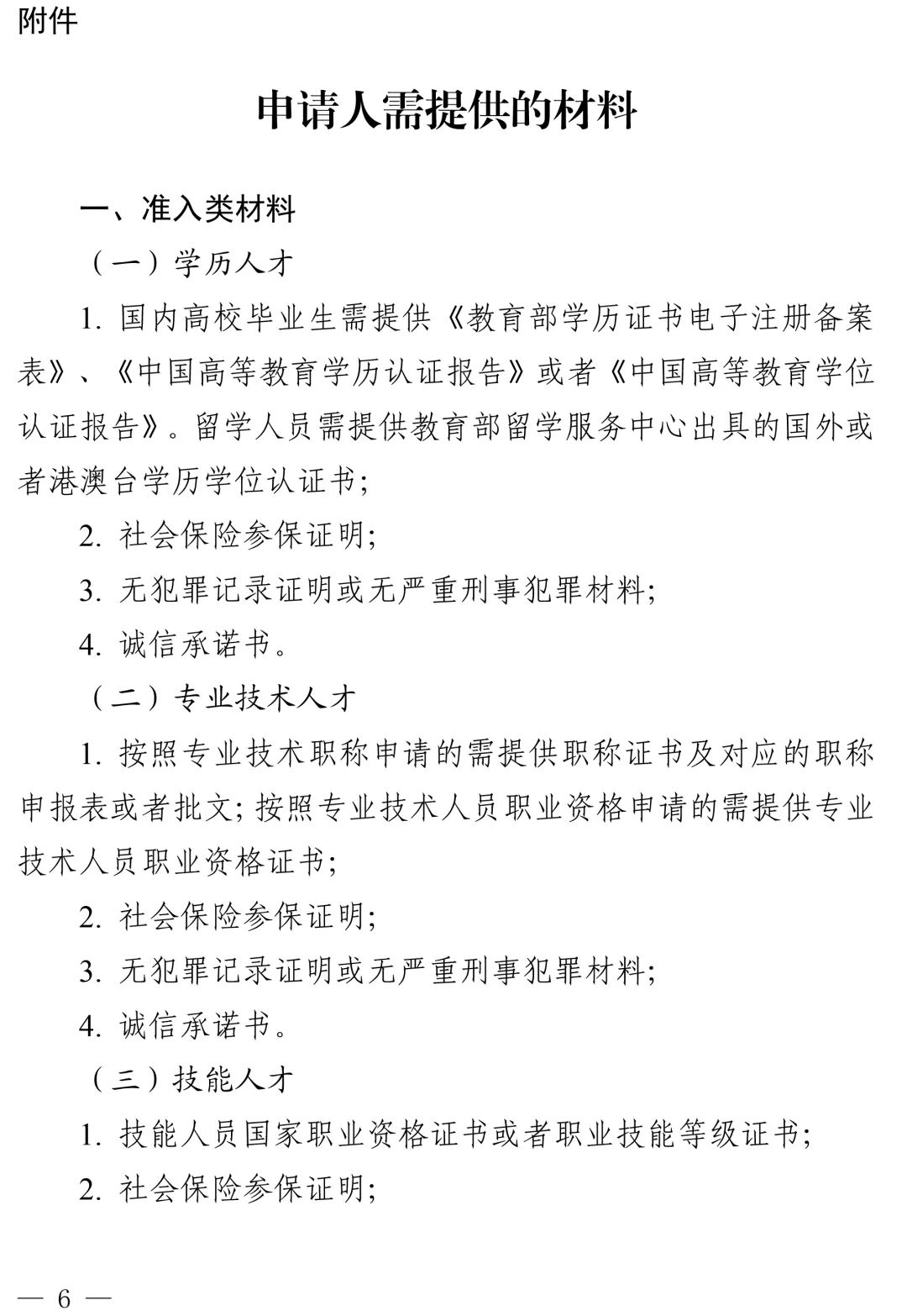 《细则》附件,(一)学历人才需提交的准入类材料:国内高校毕业生需提供《教育部学历证书电子注册备案表》、《中国高等教育学历认证报告》或者《中国高等教育学位认证报告》。留学人员需提供教育部留学服务中心出具的国外或者港澳台学历学位认证书。