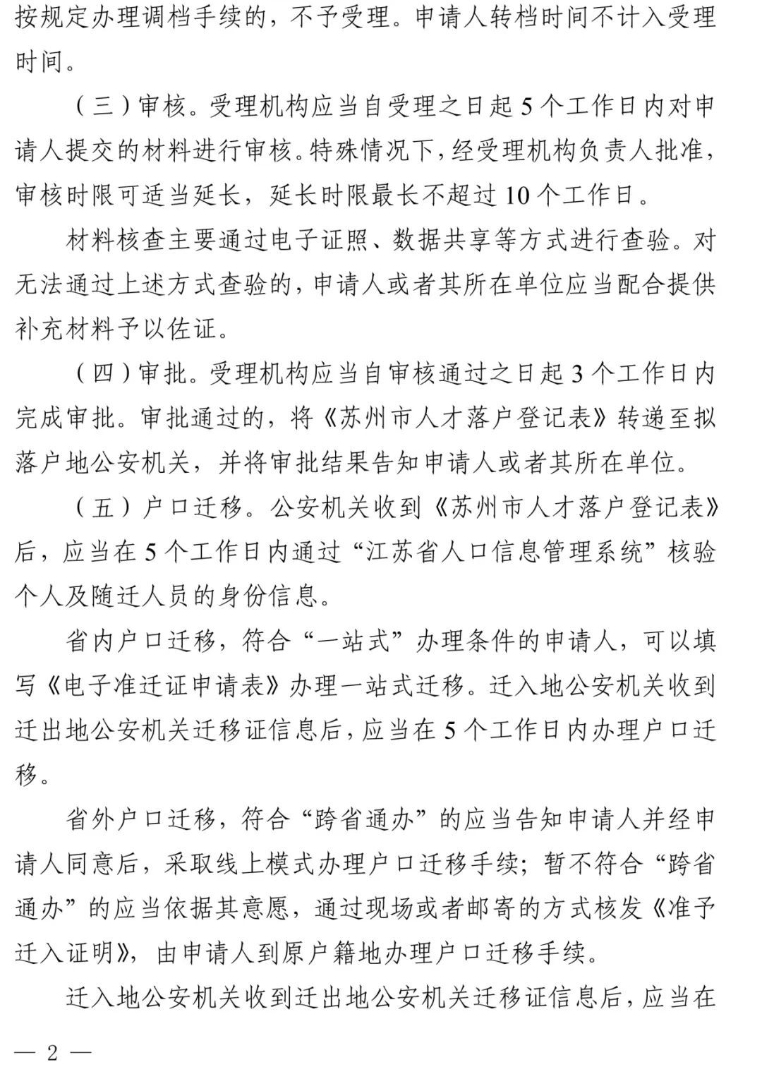 新政对在苏州就业人员,取消档案调入的前置条件,若未在苏州就业的,应当在其人事档案转入受理机构后办理落户手续。